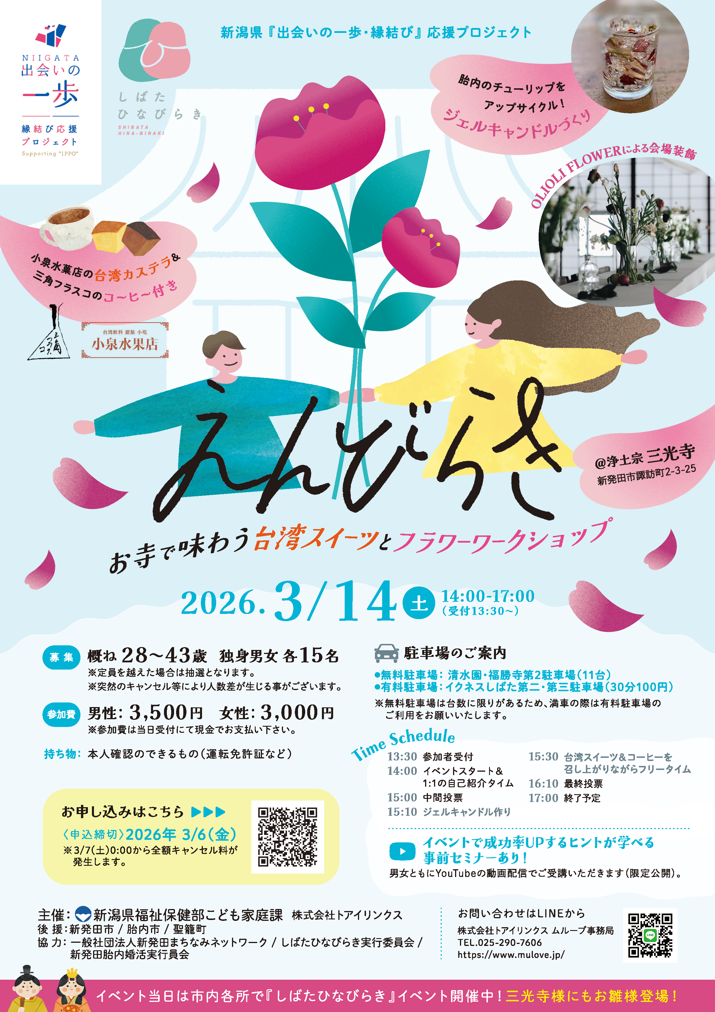 えんびらき@三光寺〜お寺で味わう台湾スイーツとフラワーワークショップ〜2026年01月08日 にいがた出会いサポートセンターから