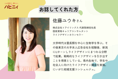 「私自身も、『ライフデザインを広めたい』と描き続けていたら、やるべきことが少しずつ見えてきて、自然とお仕事をいただける場面も増えていきました」と佐藤さんは話します。