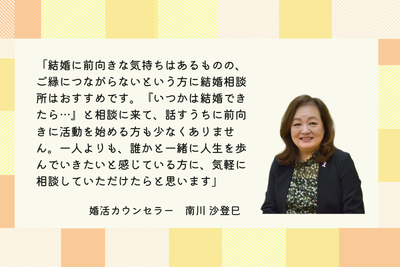 今回は、新潟市にある結婚相談所「ウェディングマーチ」代表で、婚活カウンセラー歴28年・600組以上の成婚を支えてきた南川さんにお話を聞きました。