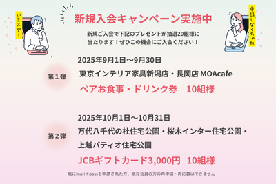 この機会に、ぜひマリパス会員になって、新潟での結婚生活をもっと楽しんでください!