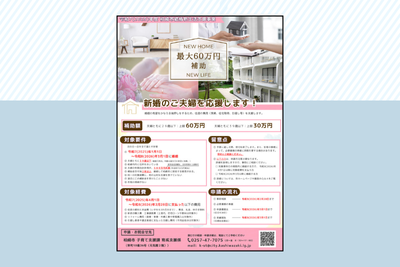 柏崎市で新生活を始める新婚世帯を対象に、住居の費用(家賃、住宅取得、引っ越し等)を支援する「結婚新生活支援事業」。条件を満たせば、最大60万円の補助が受けられるお得な制度です。(所得、年齢などの要件あり)