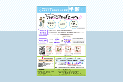 新潟県が運営するマッチングサイト「ハートマッチにいがた」への登録料について、市が半額を補助する制度です。20歳代の方の登録料9,000円、30歳以上の方の登録料11,000円のうち、それぞれの半額となる4,500円(20歳代)、5,500円(30歳以上)を助成。2日間限定(今年は9月13日(土)と11月29日(土))で、市内に臨時サポートセンターを開設するなど支援体制を充実させています。